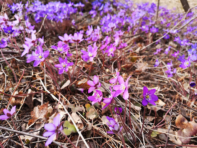 Rauhoitettuja kangasvuokkoja aivan polun vieressä.